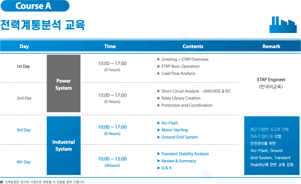 ETAP을 100% 활용하기 위한 필수교육, 지금 신청해 주시기 바랍니다.